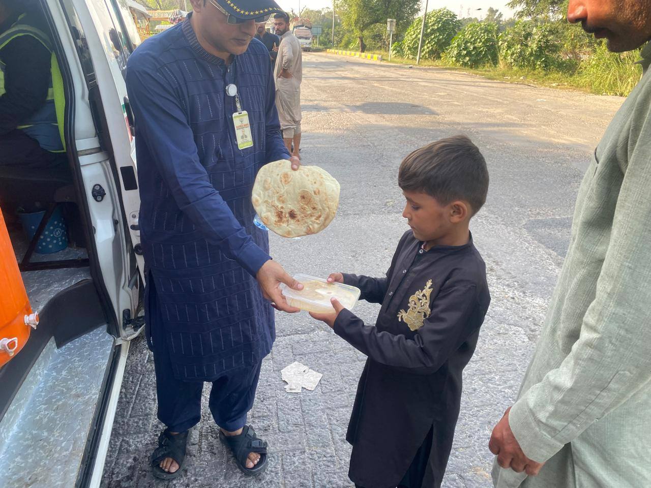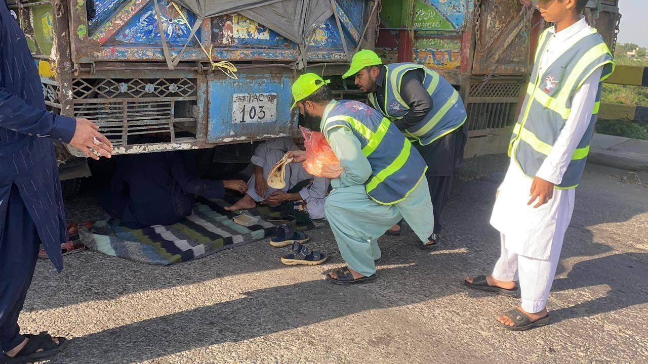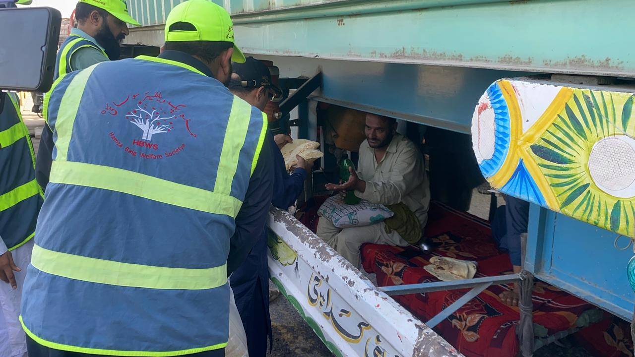 Food and water were provided to those including women and children. These people are in a desperate situation. Hamza Baig Welfare Society also appeals to the people of Jhelum that the society alone cannot make it easy for all the people, so they should also come forward. Serving such passengers is highly rewarding. Insha Allah, efforts will be made to ensure that Hamza Baig Welfare Society continues these efforts until the situation returns to normal.